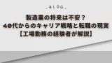 キャリアを考えずに、何となく工場勤務を続けているだけだと、経験もスキルも上達することなく、👉 気づいたら40代ということにもなり兼ねない状況です。